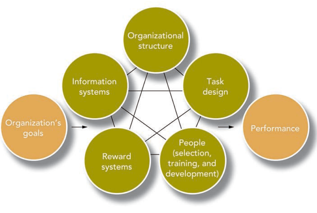 A high-performance work system (HPWS) brings together people, tasks, structure, rewards, and information so everything works toward organizational success.